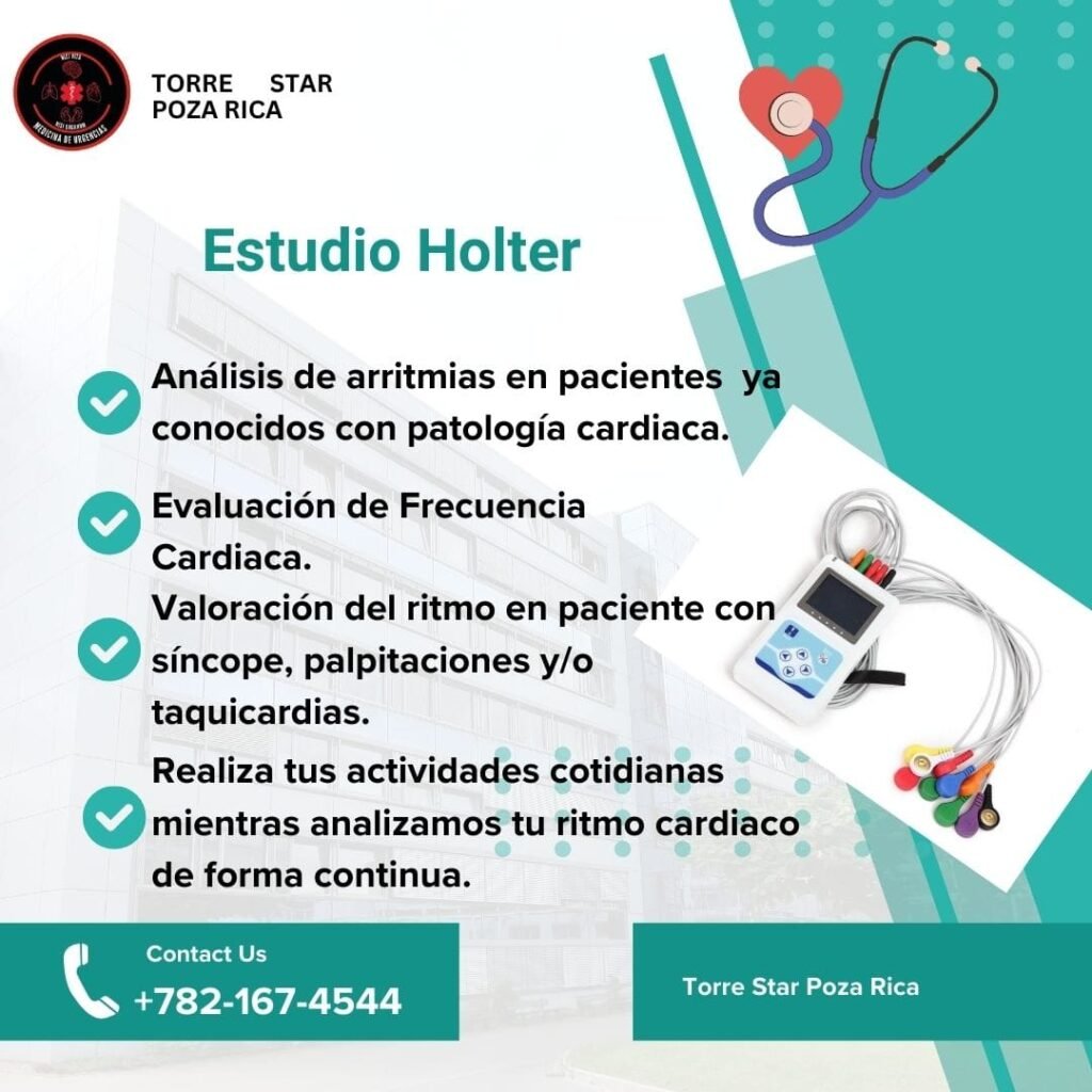 Este estudio registra el ritmo cardíaco del paciente durante 24 horas continuas e incluso durante el sueño y haciendo sus actividades cotidianas. Es de gran utilidad en paciente con arritmias previas, paciente en los que se sospecha una arritmias cardíaca, que presentan síncope, palpitaciones o taquicardias.